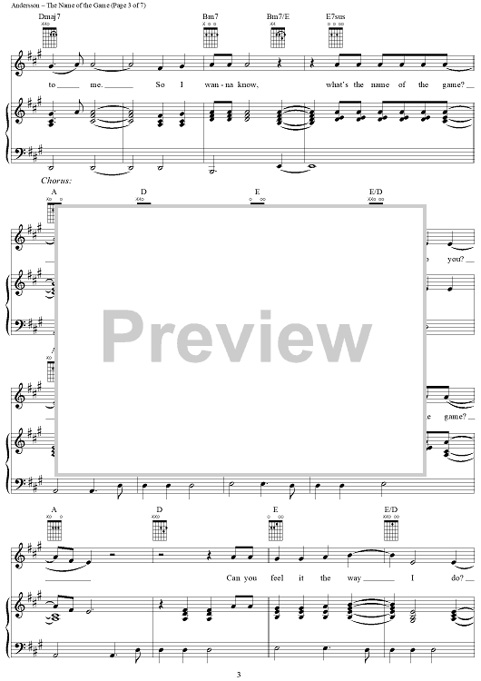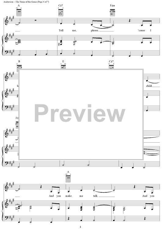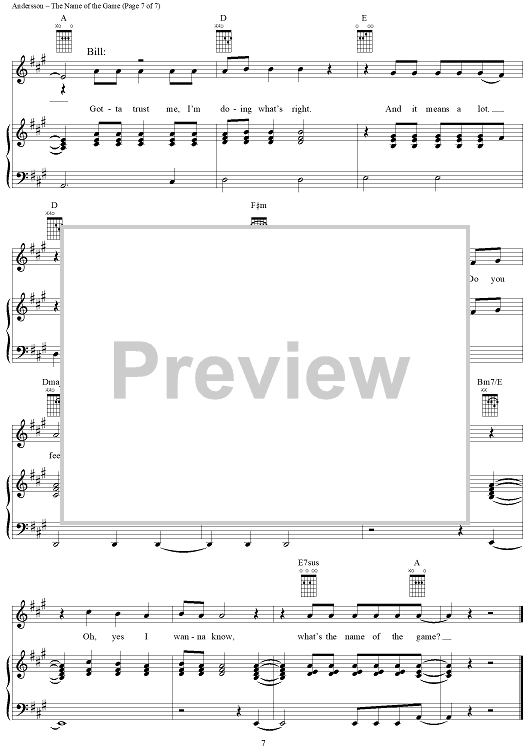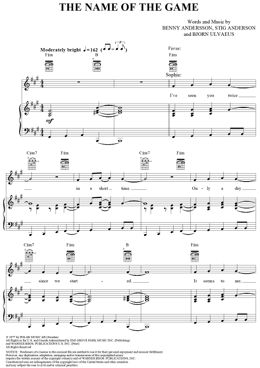Digital Sheet Music for The Name of the Game by ABBA, Benny Andersson, Bjorn Ulvaeus, Stig Anderson scored for Piano/Vocal/Chords; id:314976
