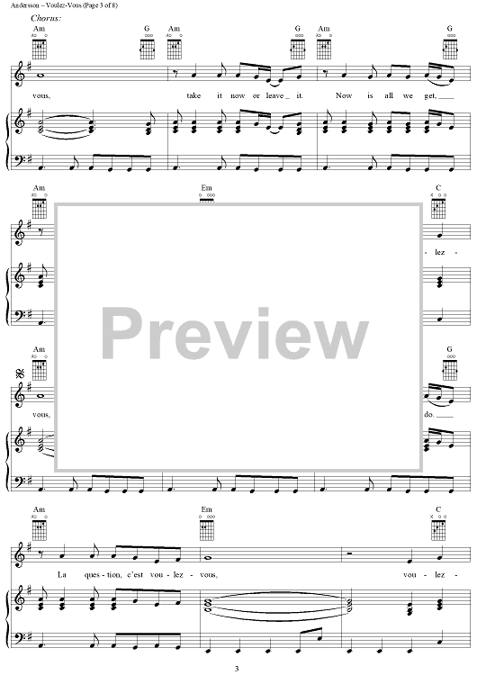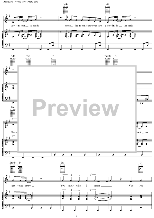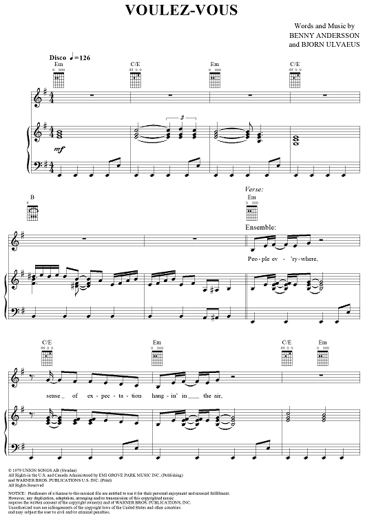 Digital Sheet Music for Voulez-Vous by ABBA, Benny Andersson, Bjorn Ulvaeus scored for Piano/Vocal/Chords; id:314969