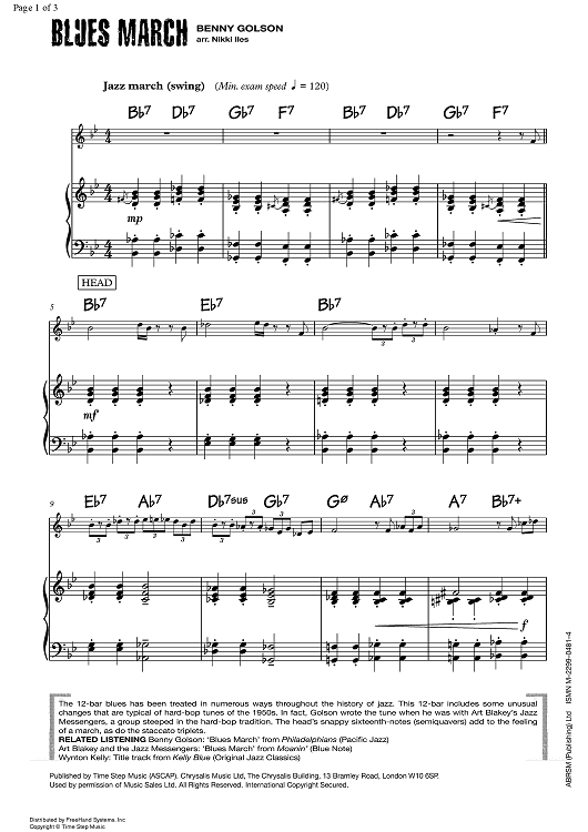 Digital Sheet Music for Blues March by Benny Golson, Nikki Iles scored for Trumpet/Piano; id:355497