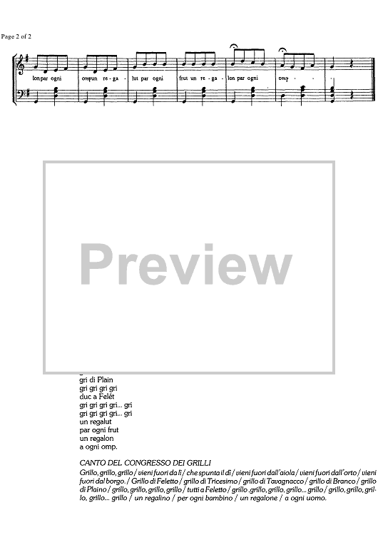 "Cjant dal congres dai grîs" Sheet Music by Oreste Rosso