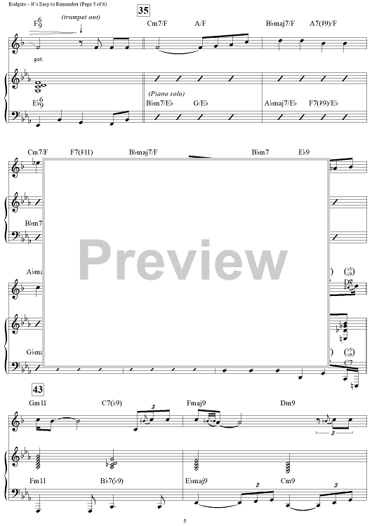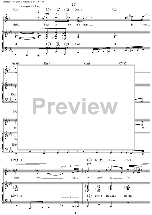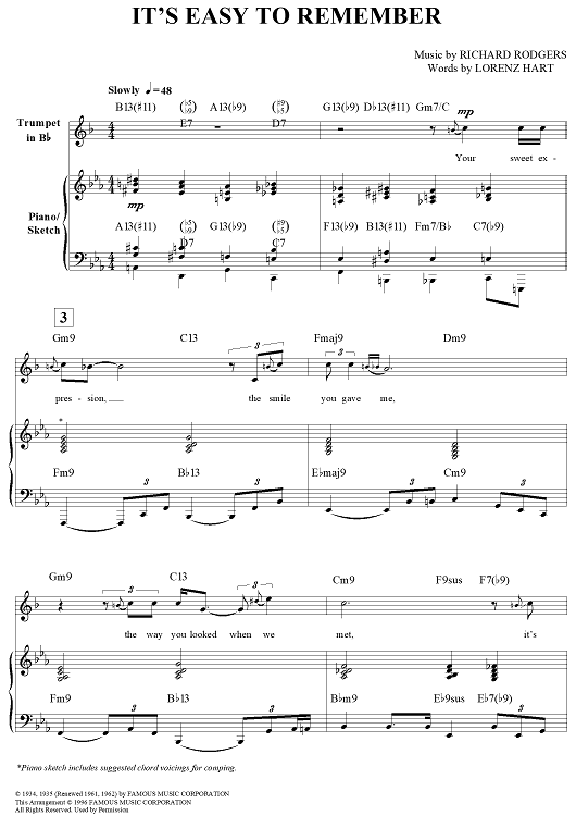 Digital Sheet Music for It's Easy to Remember by Richard Rodgers, Lorenz Hart, Wynton Marsalis scored for Trumpet/Piano; id:254869