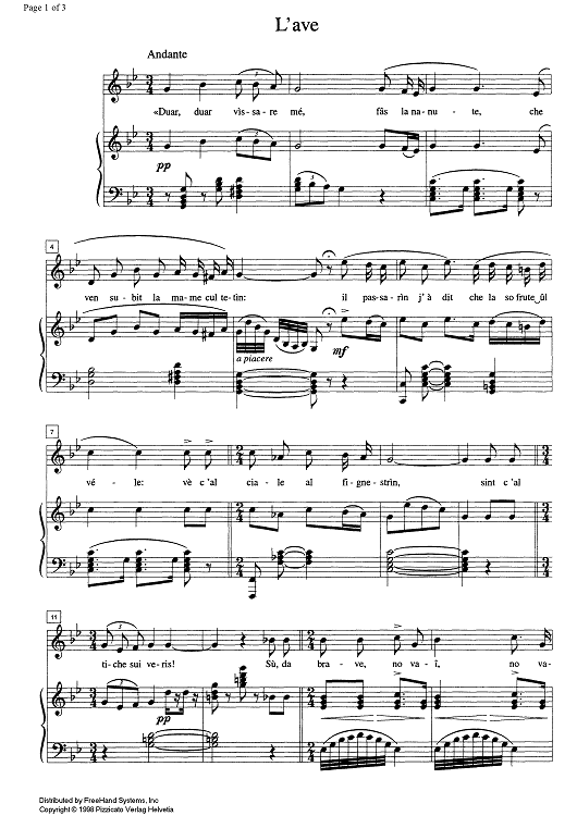 Digital Sheet Music for L'ave by , Arturo Zardini scored for Voice/Piano; id:331192