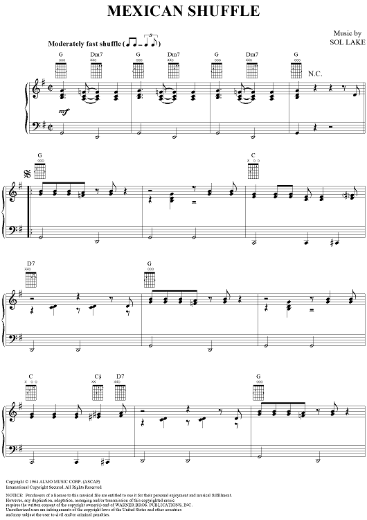 Digital Sheet Music for Mexican Shuffle - Piano by Sol Lake, Herb Alpert scored for Trumpet/Piano; id:168005