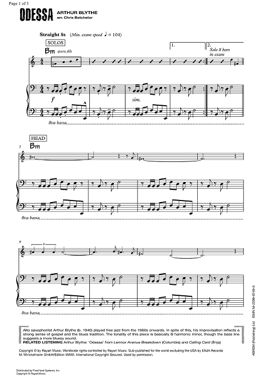 Digital Sheet Music for Odessa by Chris Batchelor, Arthur Blythe scored for Trumpet/Piano; id:355523