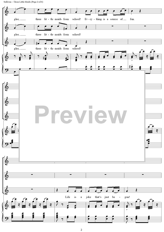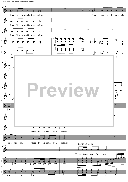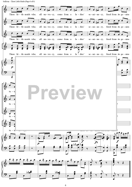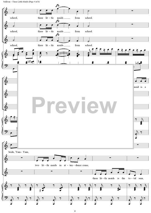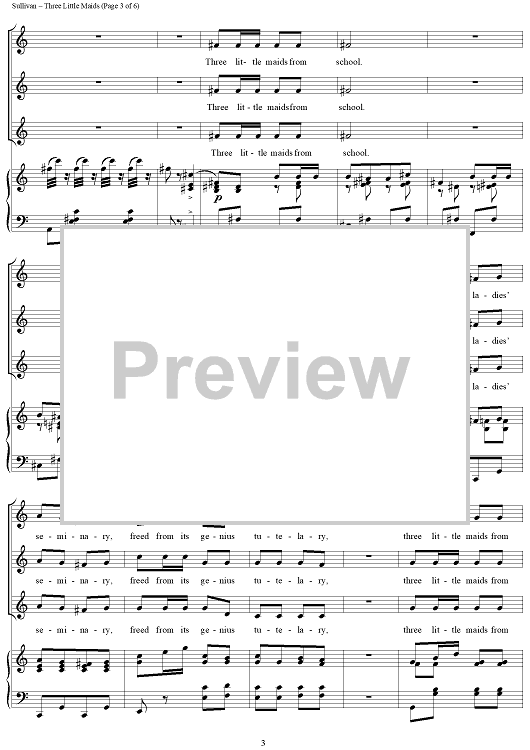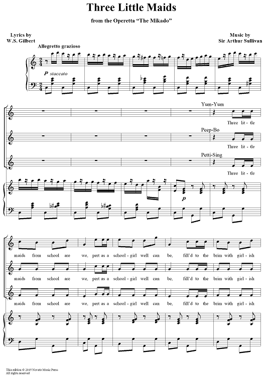 Digital Sheet Music for Three Little Maids by W. S. Gilbert, Arthur Sullivan scored for Three Women's Voices/Piano; id:159991