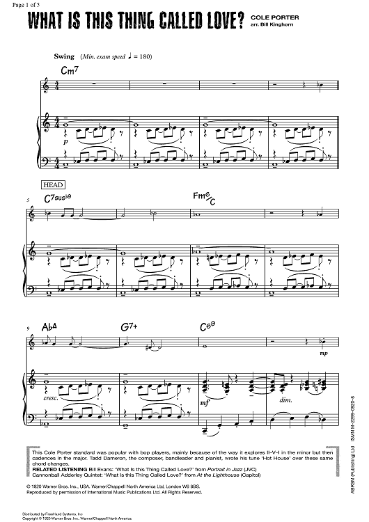Digital Sheet Music for What Is This Thing Called Love? by Bill Kinghorn, Cole Porter scored for Saxophone/Piano; id:355542