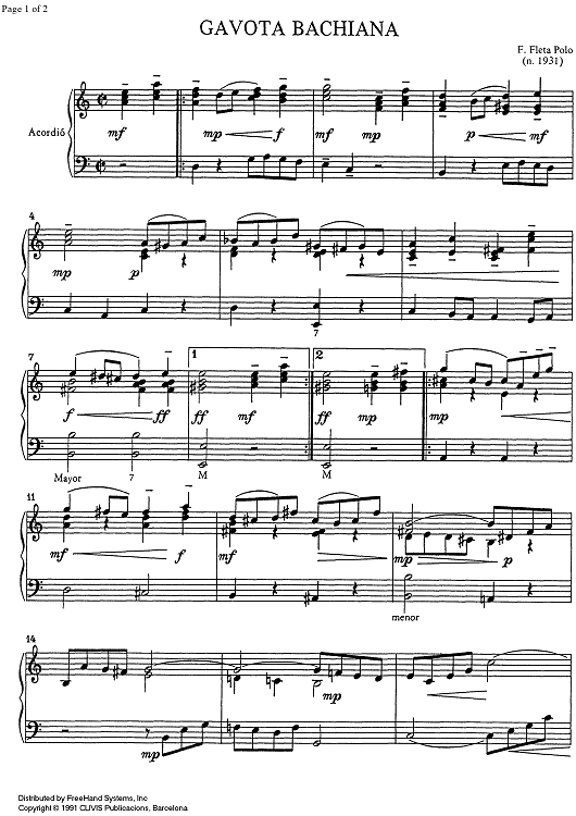 "Gavota Bachiana" Sheet Music by Francisco Fleta Polo