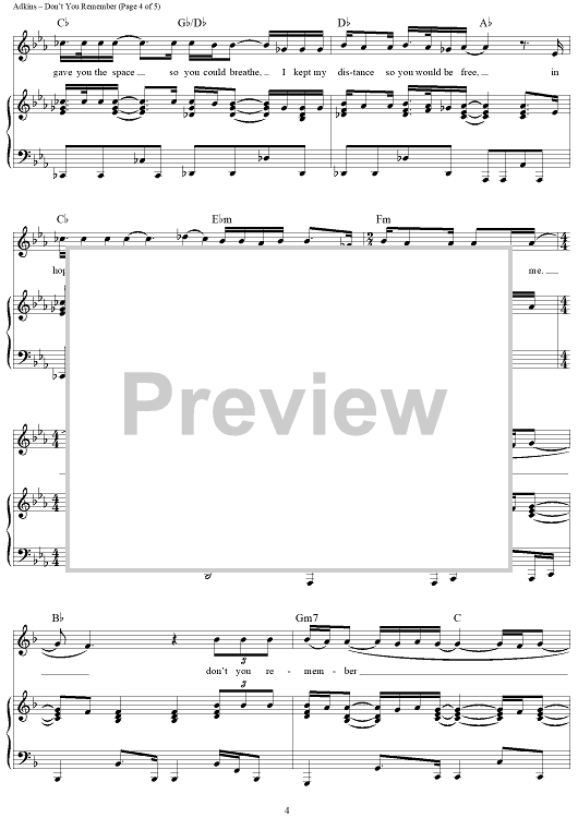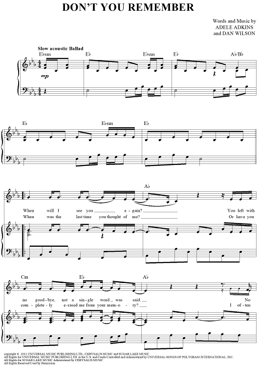 Digital Sheet Music for Don't You Remember by Dan Wilson, Adele Adkins, Adele scored for Piano/Vocal/Chords; id:427679