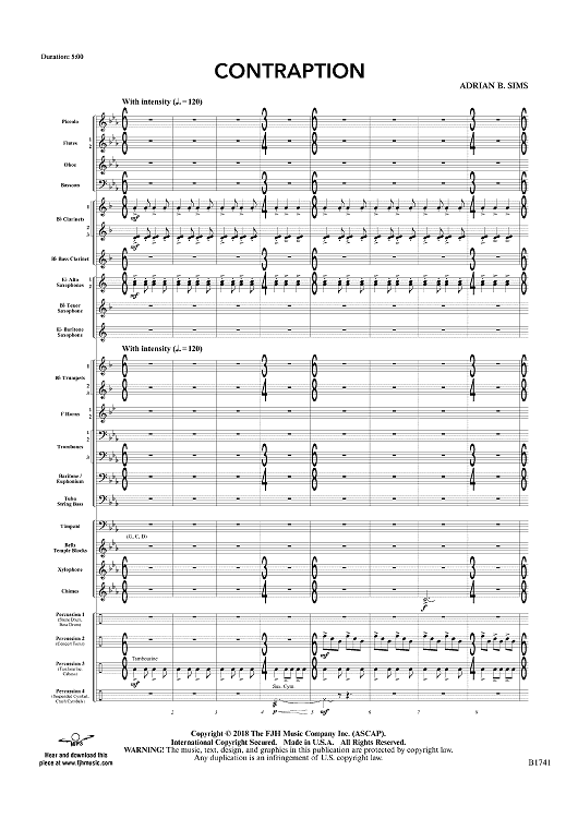 "Contraption - Score" Sheet Music by Adrian B. Sims