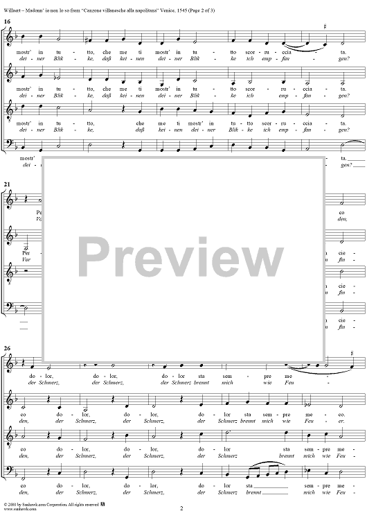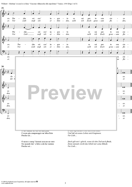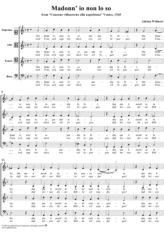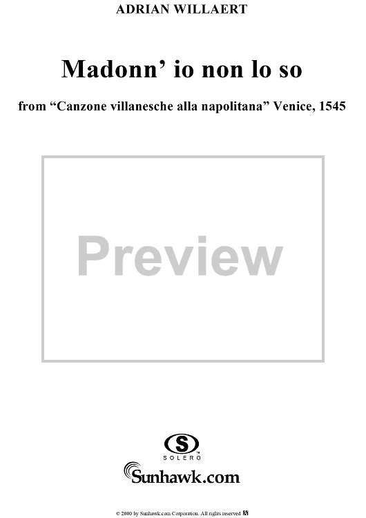Digital Sheet Music for Madonn' io non lo so - from "Canzone villanesche alla napolitana" Venice, 1545 by Adrian Willaert scored for Four-part Mixed Chorus; id:276803