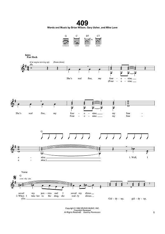 Digital Sheet Music for 409 by Brian Wilson, The Beach Boys, Mike Love, Gary Usher scored for Lead Sheet with Guitar Grids; id:369705
