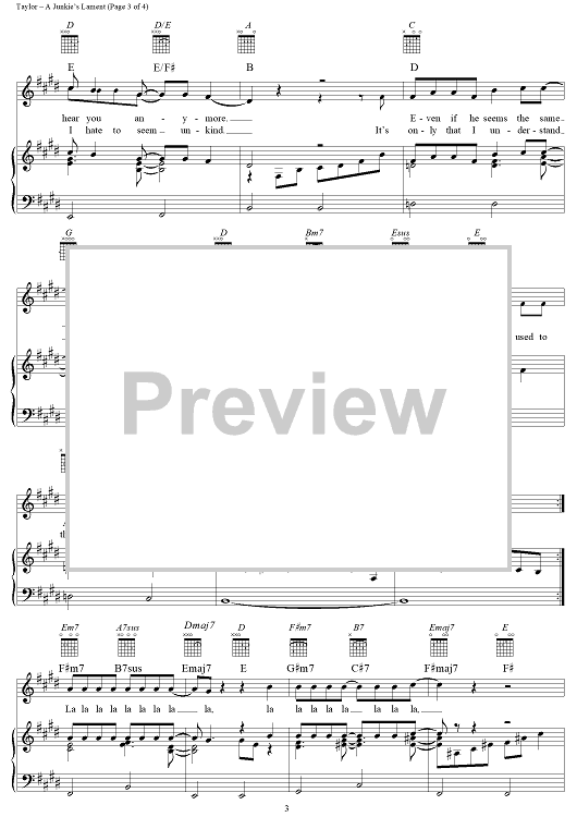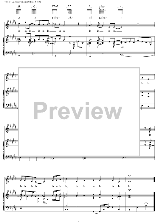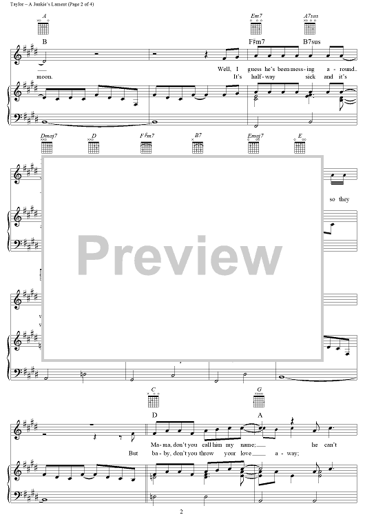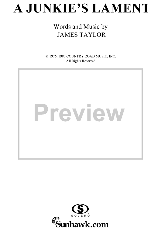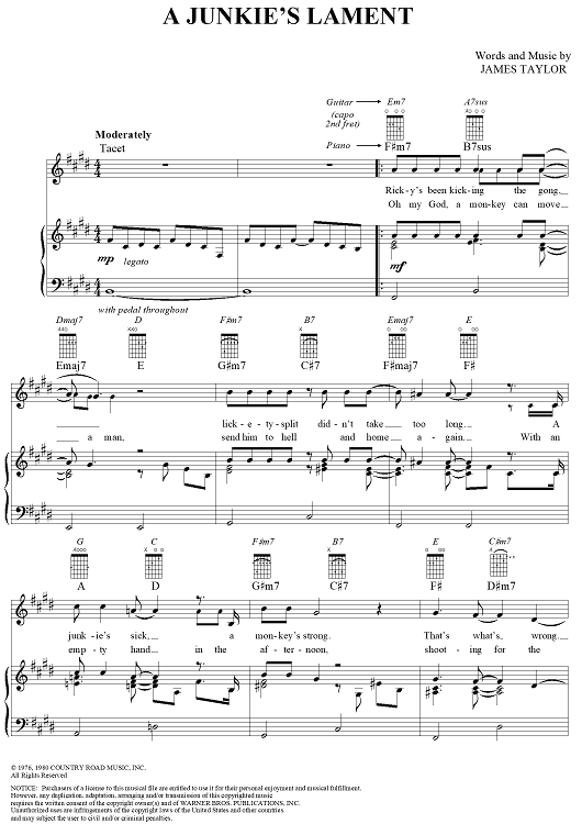 Digital Sheet Music for A Junkie's Lament by James Taylor scored for Piano/Vocal/Chords; id:113777