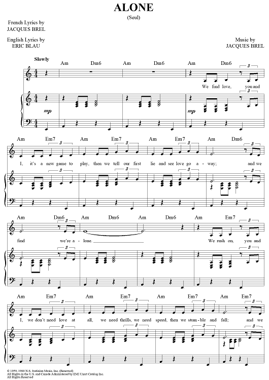 "Alone (Seul)" Sheet Music by Jacques Brel