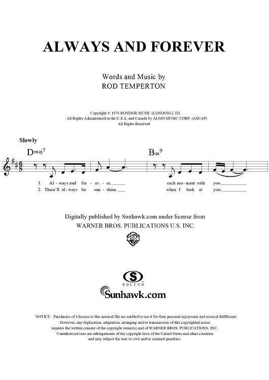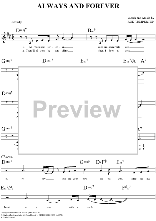 Digital Sheet Music for Always and Forever by Rod Temperton, Heatwave scored for Lead Sheet; id:135508