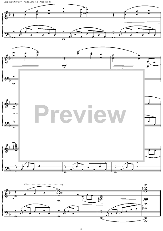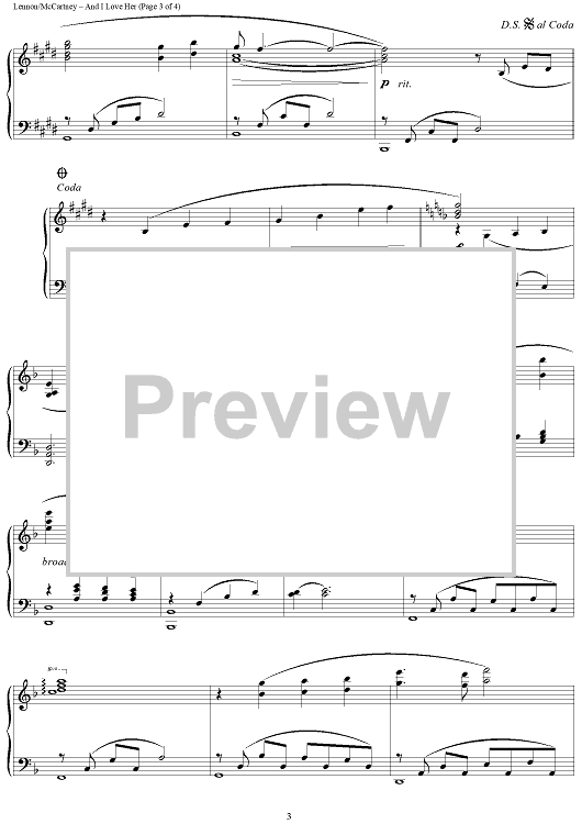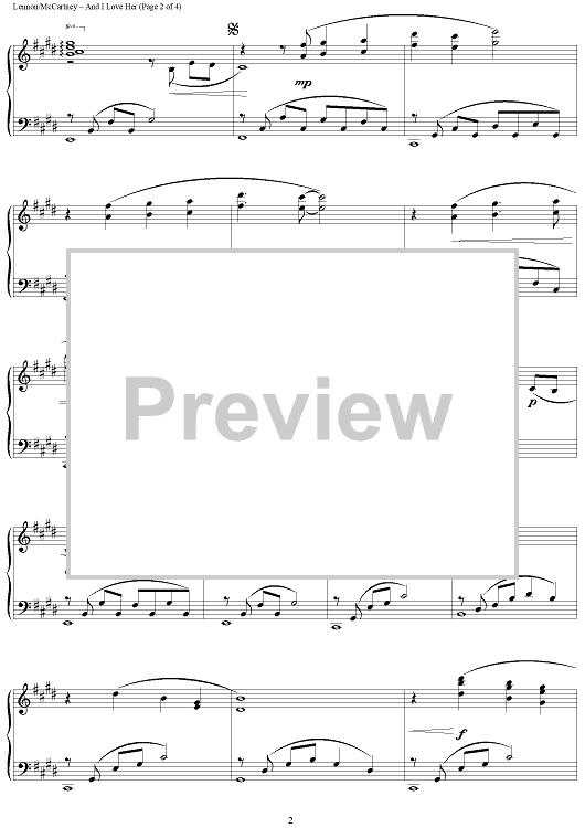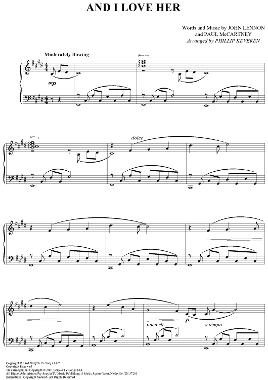 Digital Sheet Music for And I Love Her by Paul McCartney, The Beatles, John Lennon, Phillip Keveren scored for Piano Solo; id:396508
