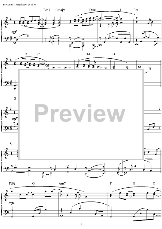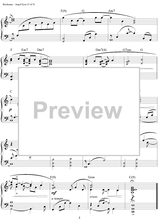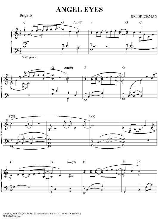 Digital Sheet Music for Angel Eyes by Jim Brickman scored for Piano Solo; id:94754