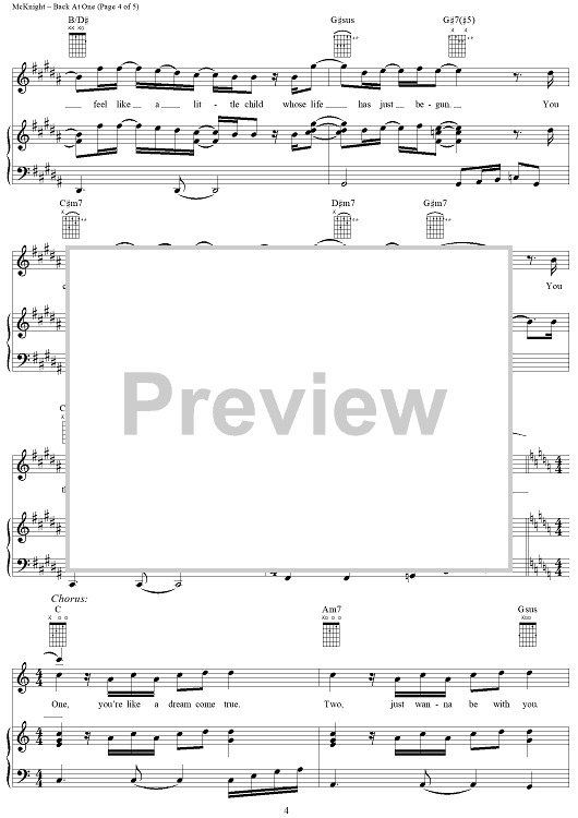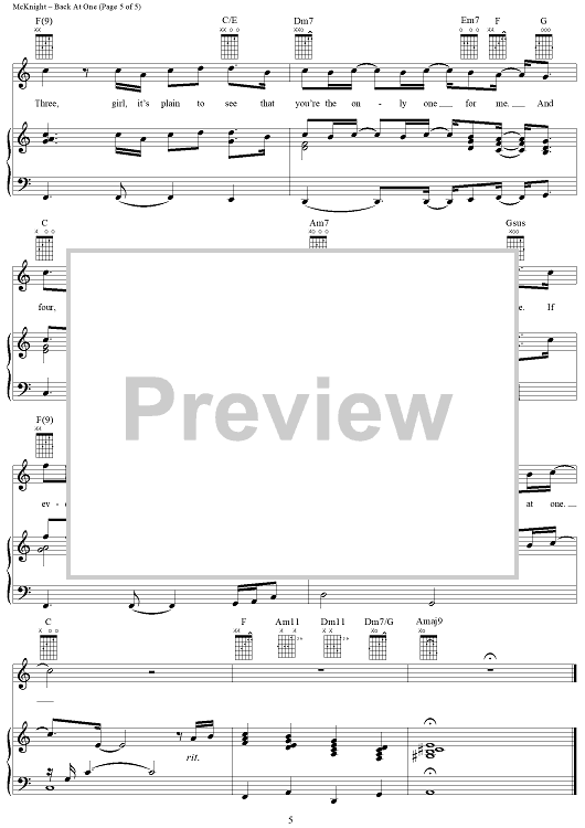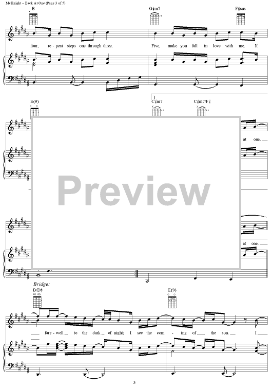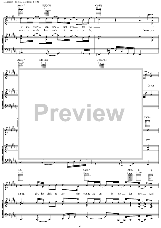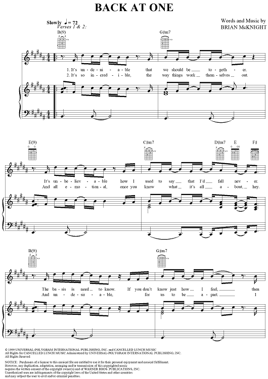 Digital Sheet Music for Back at One by Mark Wills, Brian McKnight scored for Piano/Vocal/Chords; id:124395