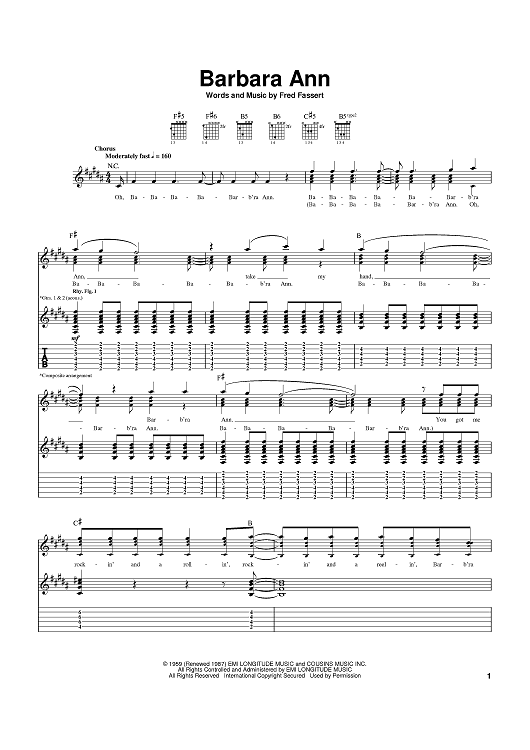 Digital Sheet Music for Barbara Ann by The Beach Boys, Fred Fassert, The Regents scored for Guitar Tab; id:367648