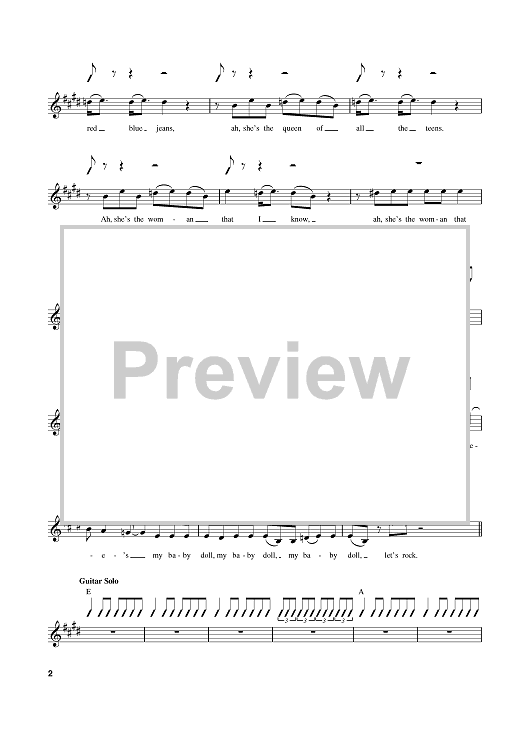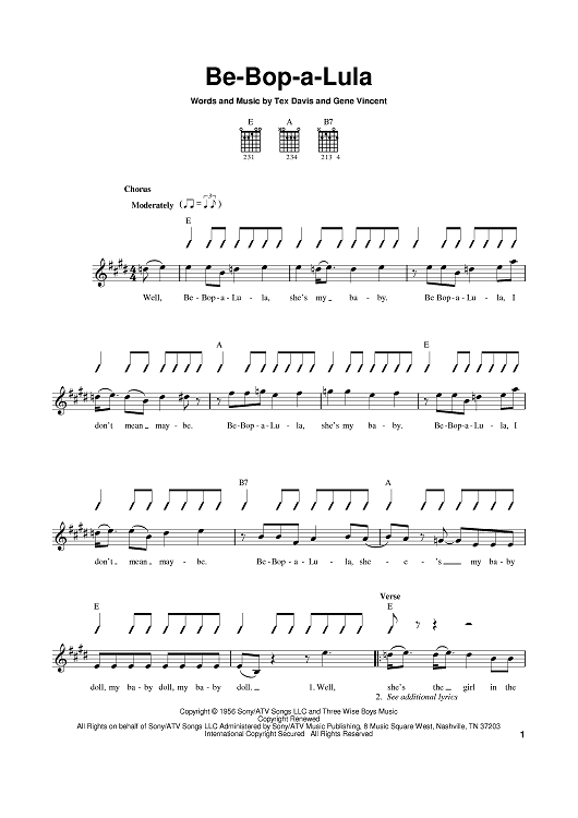 Digital Sheet Music for Be-Bop-A-Lula by Gene Vincent, Tex Davis, Jerry Lee Lewis, The Everly Brothers scored for Lead Sheet with Guitar Grids; id:372134