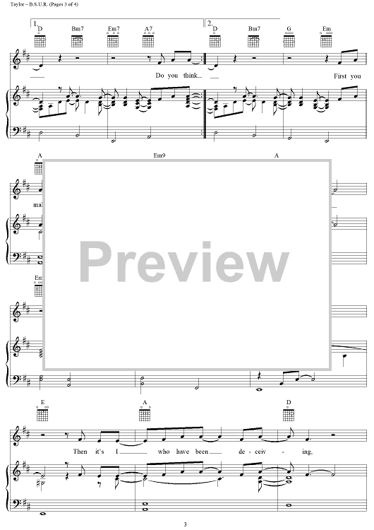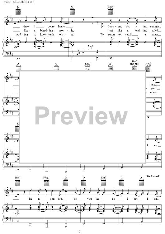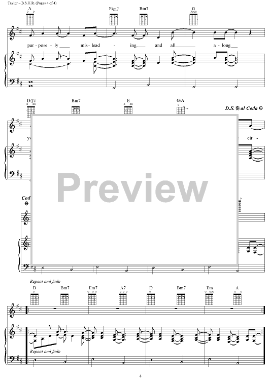 Digital Sheet Music for B.S.U.R. by James Taylor scored for Piano/Vocal/Chords; id:112318