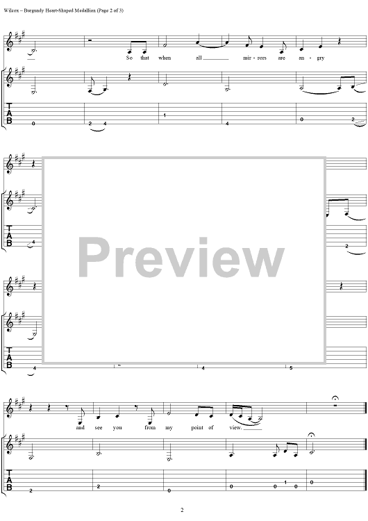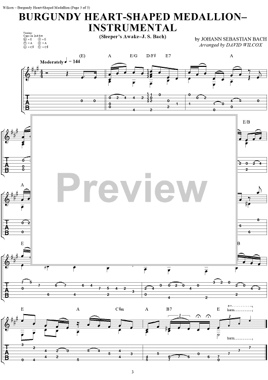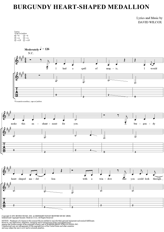 Digital Sheet Music for Burgundy Heart Shaped Medallion by David Wilcox, Johann Sebastian Bach scored for Guitar Tab/Vocal; id:263925