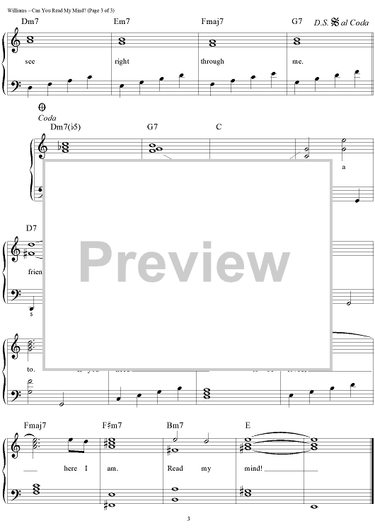 Digital Sheet Music for Can You Read My Mind? by Leslie Bricusse, John Williams scored for Easy Piano/Vocal; id:219050