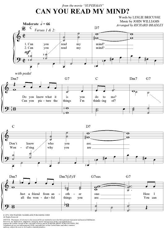 "Can You Read My Mind?" Sheet Music by John Williams