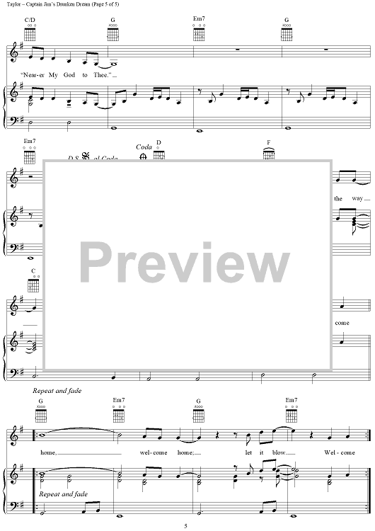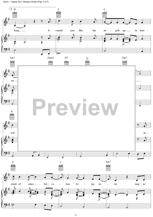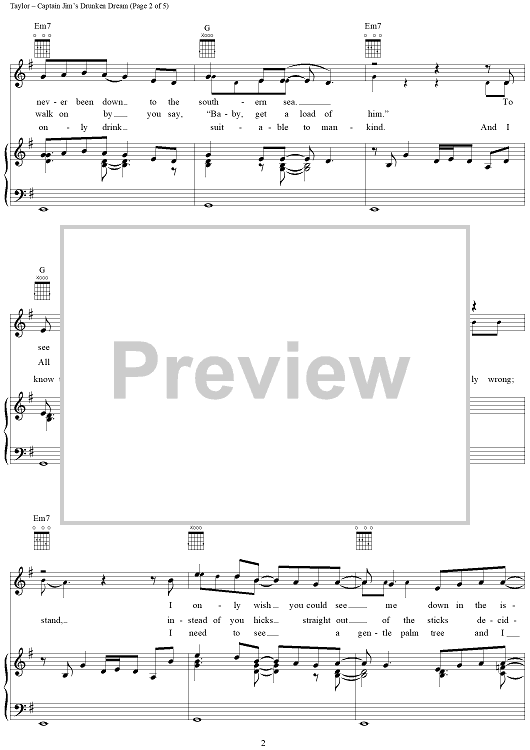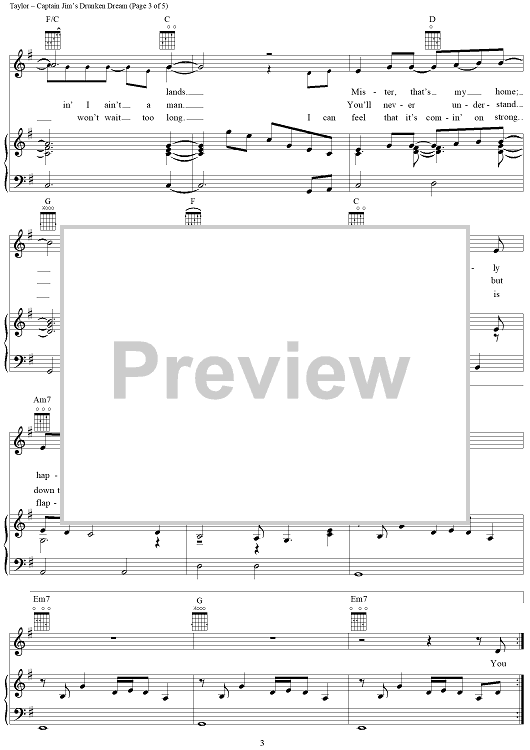 Digital Sheet Music for Captain Jim's Drunken Dream by James Taylor scored for Piano/Vocal/Chords; id:113050