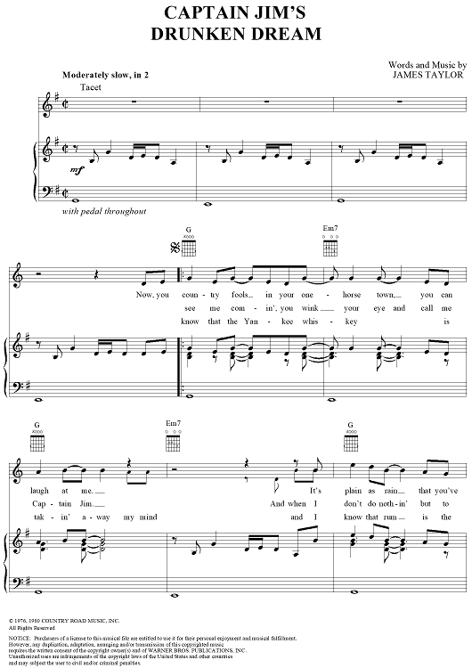 "Captain Jim's Drunken Dream" Sheet Music by James Taylor