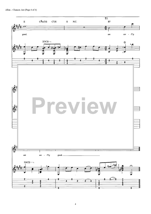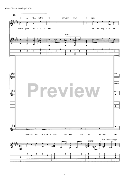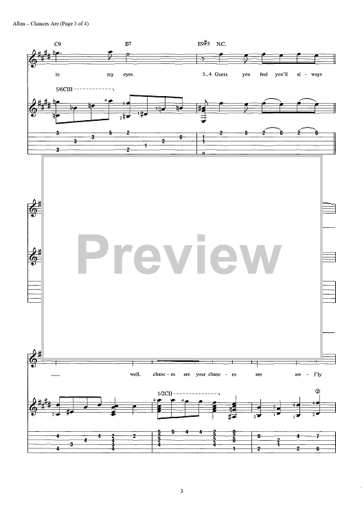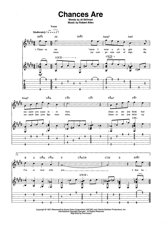 Digital Sheet Music for Chances Are by Robert Allen, Al Stillman scored for Guitar Tab/Vocal/Chords; id:442858