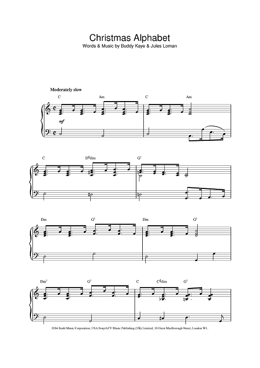 Digital Sheet Music for Christmas Alphabet by Buddy Kaye, Jules Loman, Paul Brooks scored for Piano; id:383906
