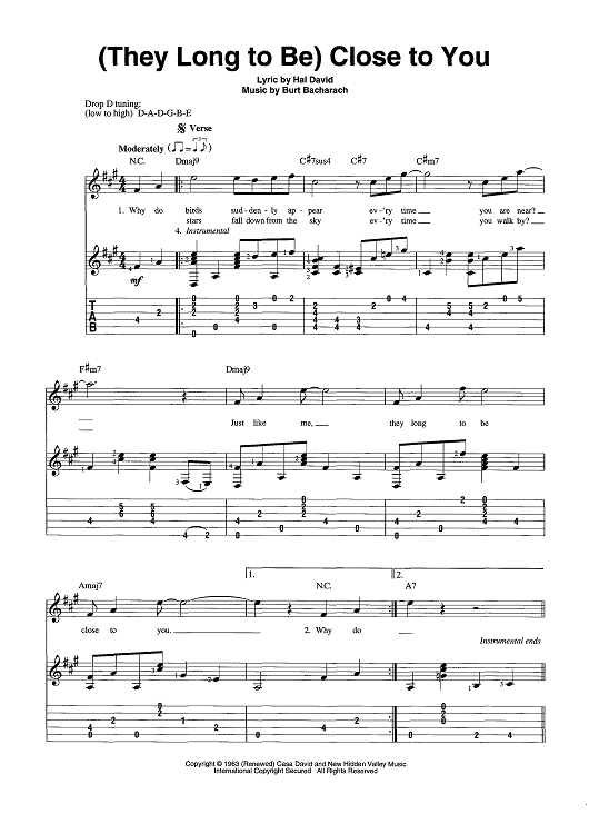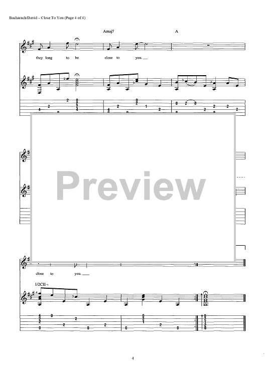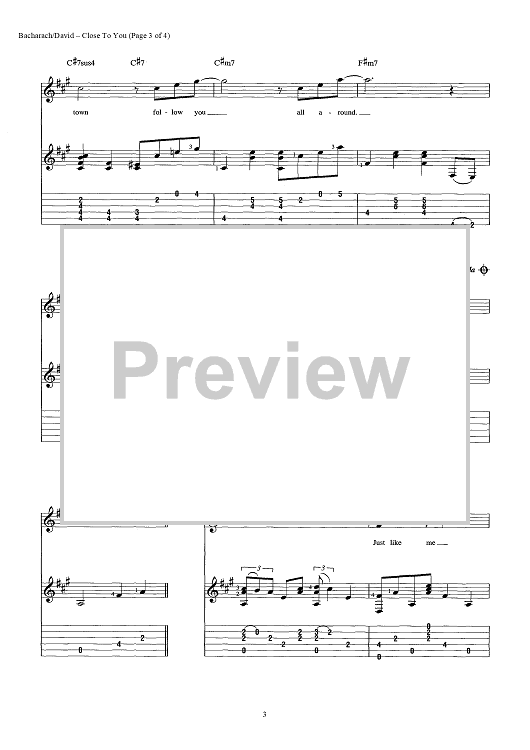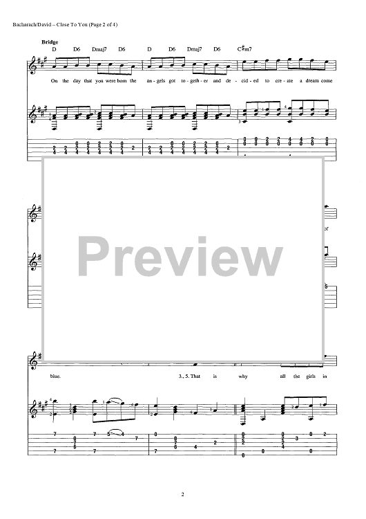 Digital Sheet Music for Close To You by Hal David, Burt Bacharach scored for Guitar Tab/Vocal/Chords; id:442861