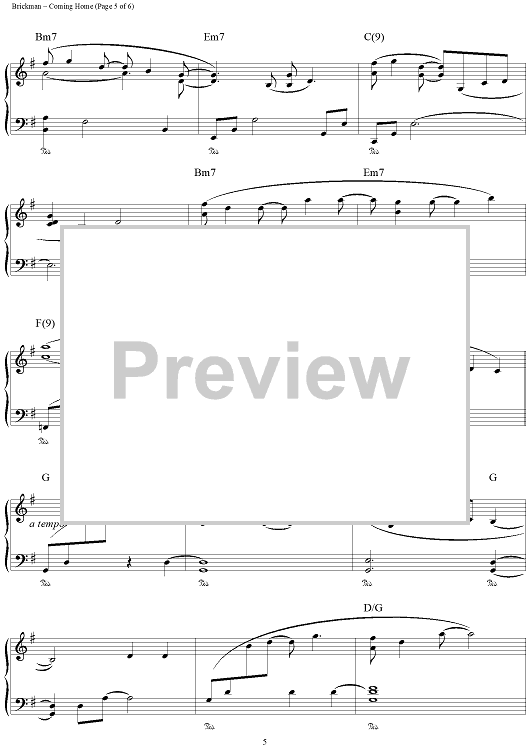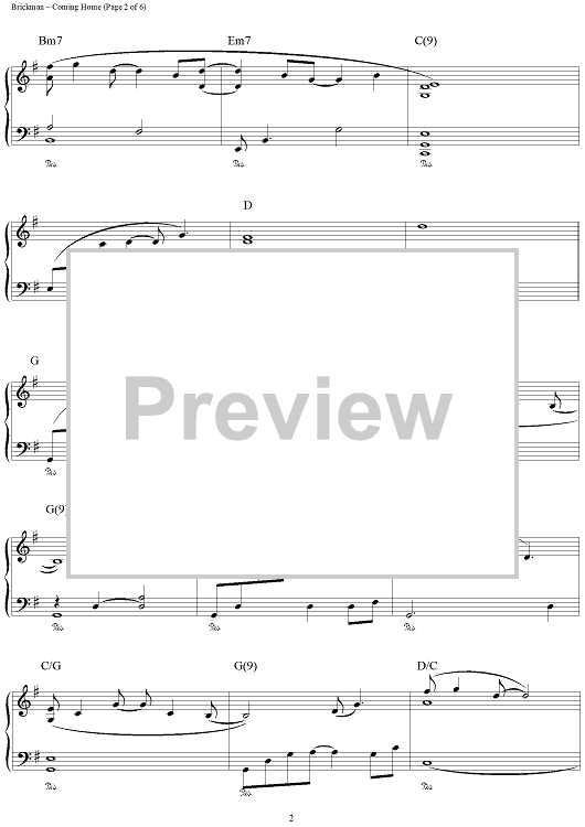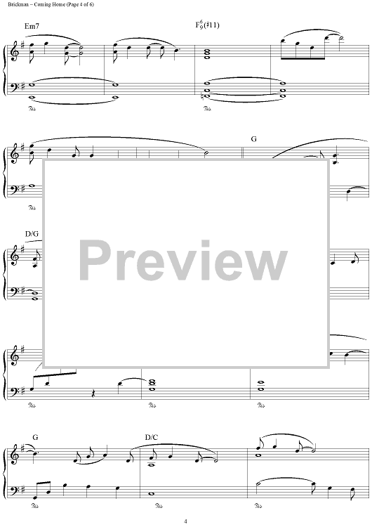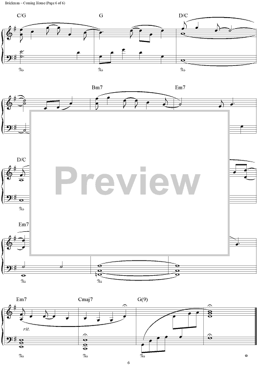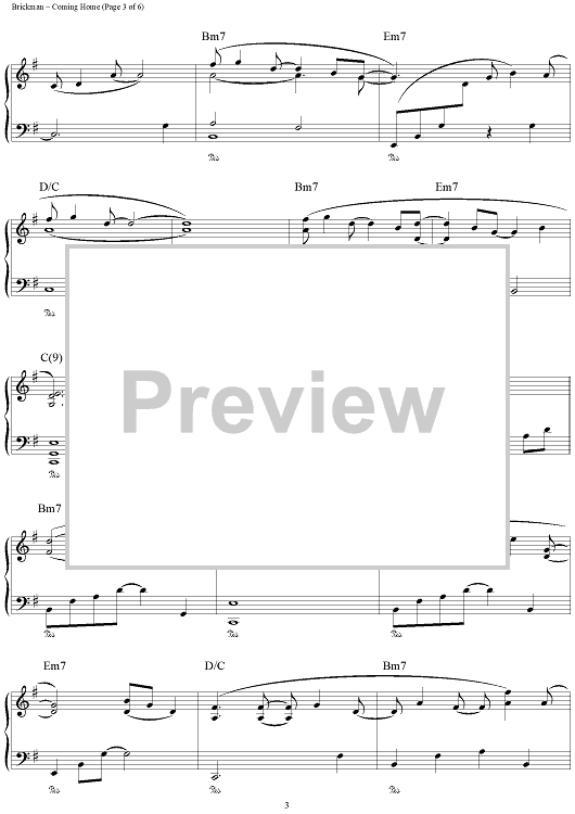 Digital Sheet Music for Coming Home by Jim Brickman scored for Piano Solo; id:111634
