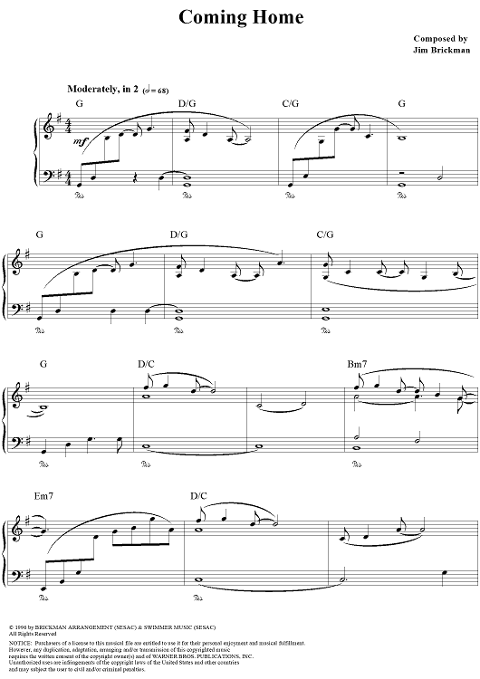 "Coming Home" Sheet Music by Jim Brickman