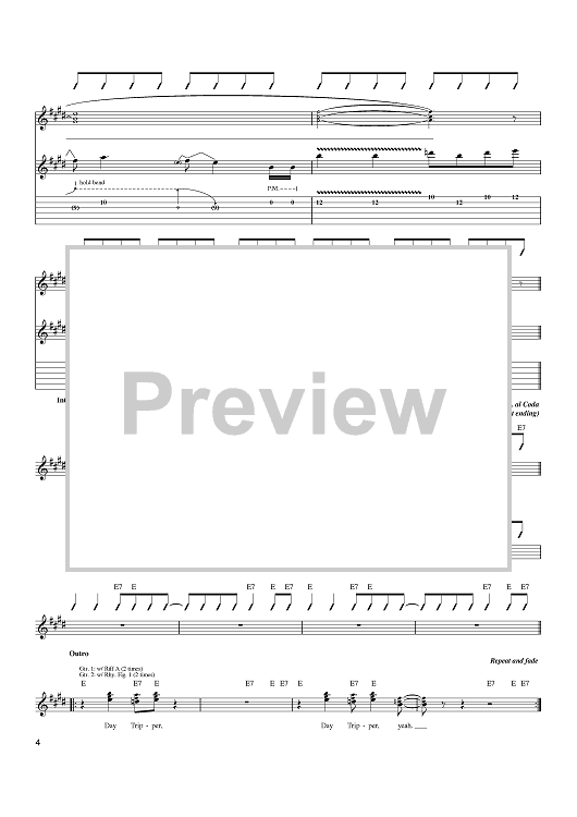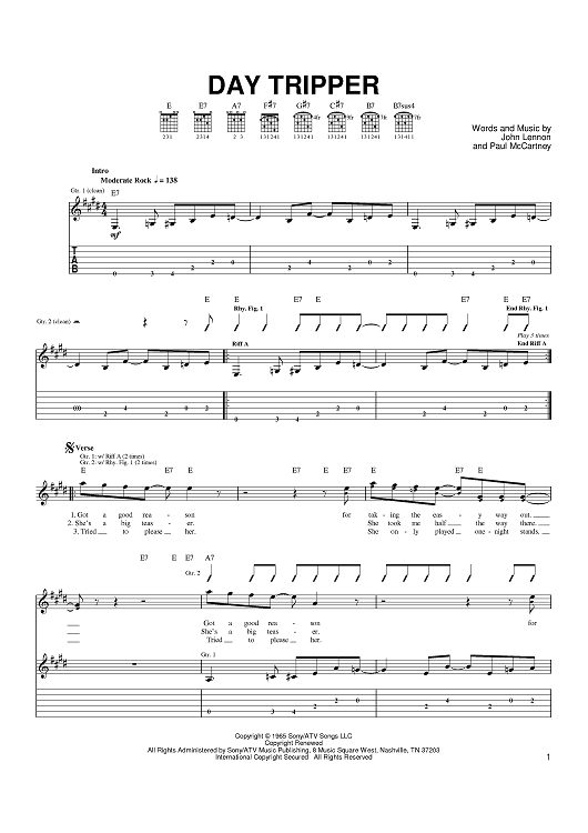 Digital Sheet Music for Day Tripper by Paul McCartney, The Beatles, John Lennon scored for Easy Guitar Tab; id:381944