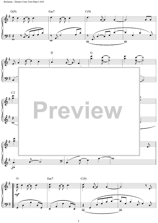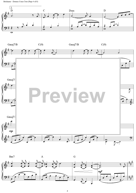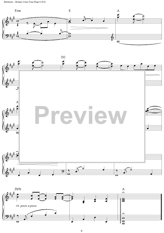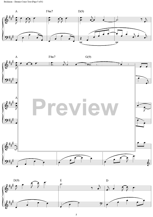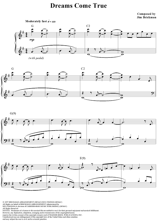 Digital Sheet Music for Dreams Come True by Jim Brickman scored for Piano Solo; id:111610