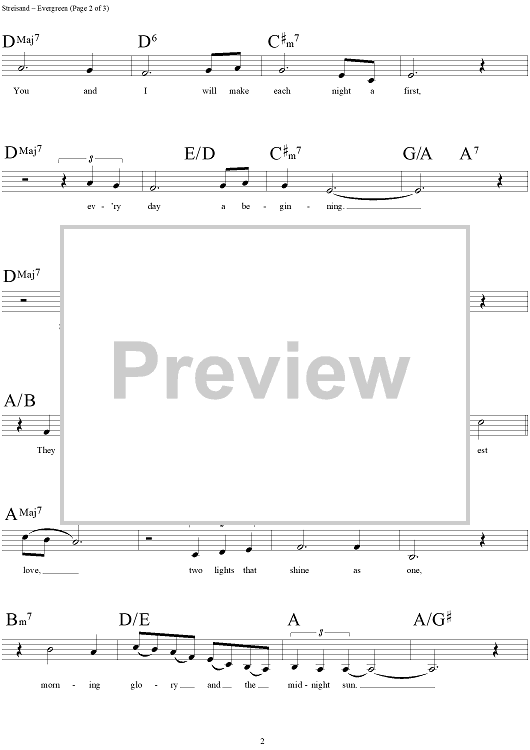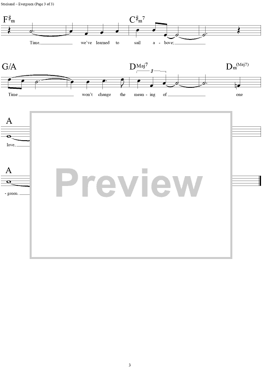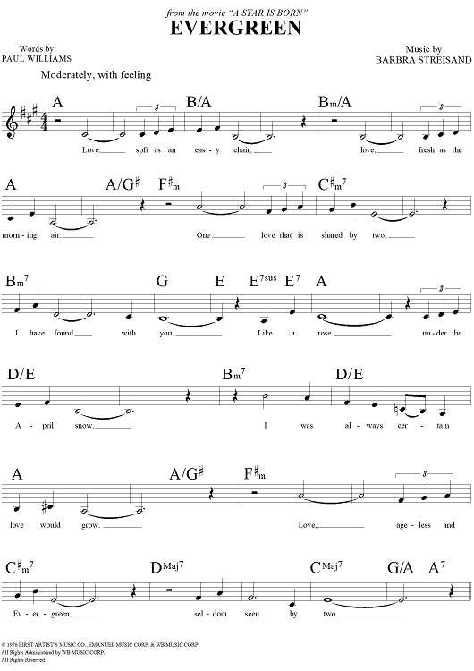 Digital Sheet Music for Evergreen by Paul Williams, Barbra Streisand scored for Lead Sheet; id:112270