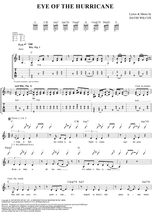 "Eye of the Hurricane" Sheet Music by David Wilcox