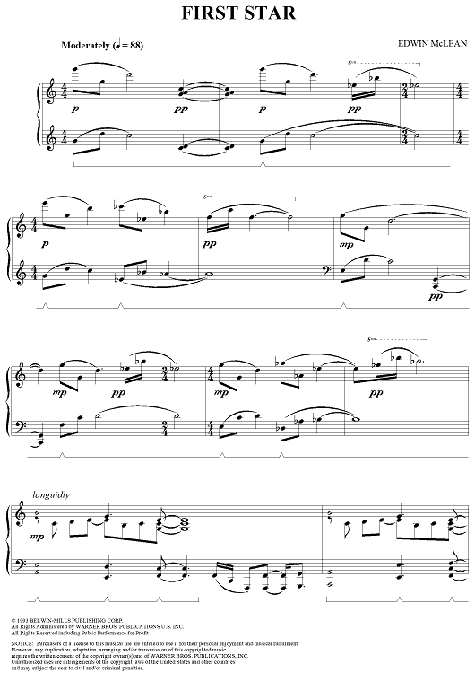 Digital Sheet Music for First Star by Edwin McLean scored for Piano Solo; id:120719