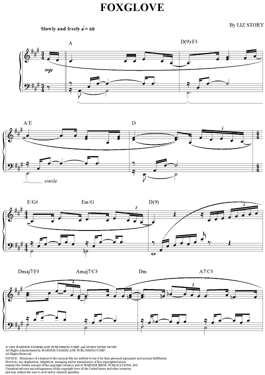 Digital Sheet Music for Foxglove by Liz Story scored for Piano Solo; id:131754