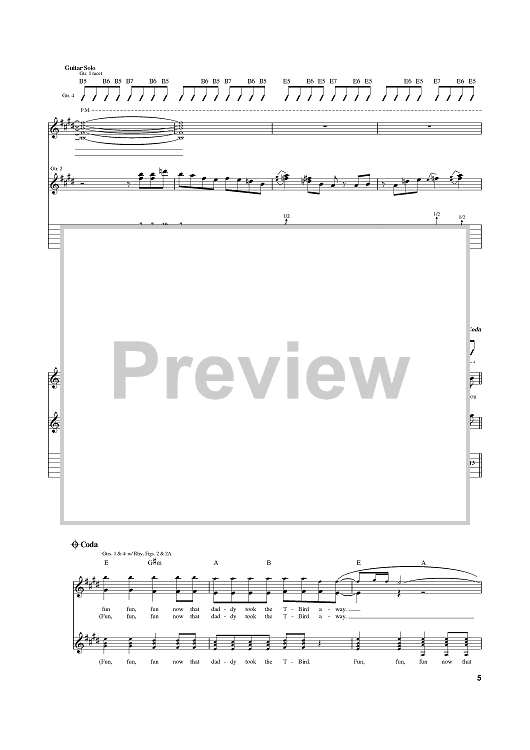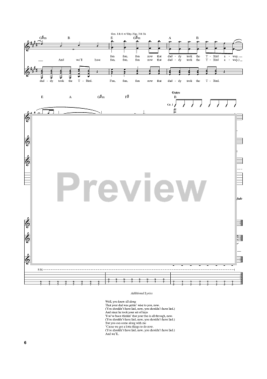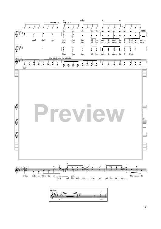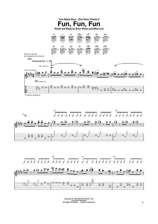 Digital Sheet Music for Fun, Fun, Fun by Brian Wilson, The Beach Boys, Mike Love scored for Guitar Tab; id:368947