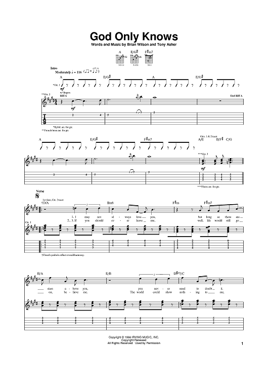 Digital Sheet Music for God Only Knows by Brian Wilson, The Beach Boys, Tony Asher scored for Guitar Tab; id:367655