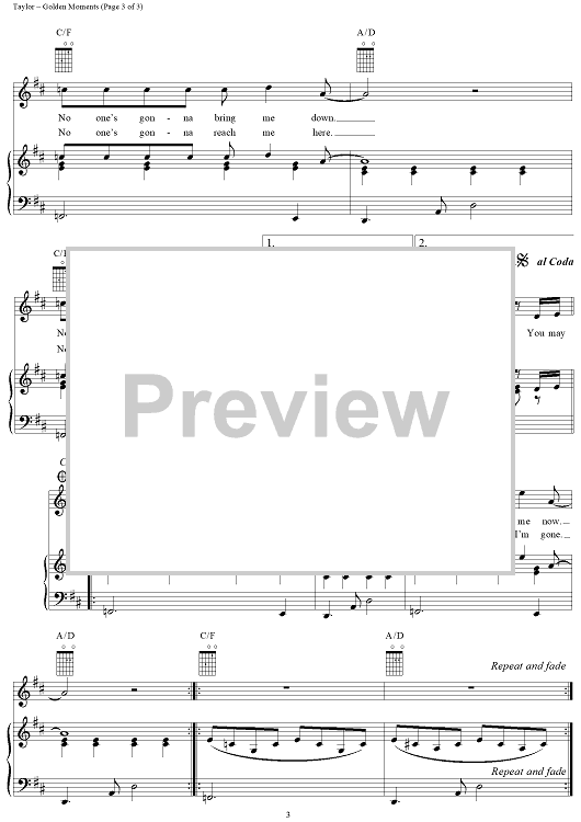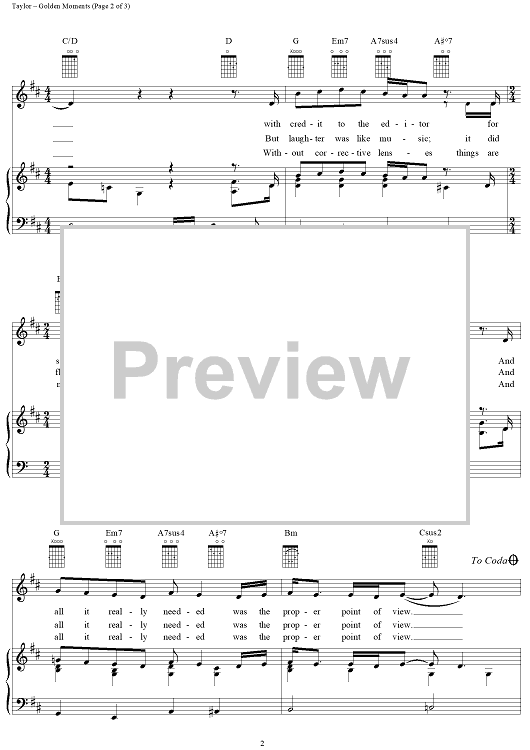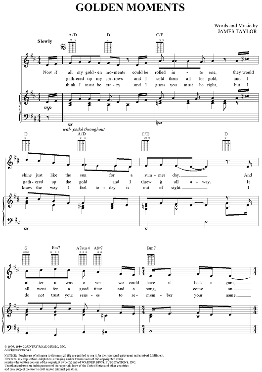 Digital Sheet Music for Golden Moments by James Taylor scored for Piano/Vocal/Chords; id:113232
