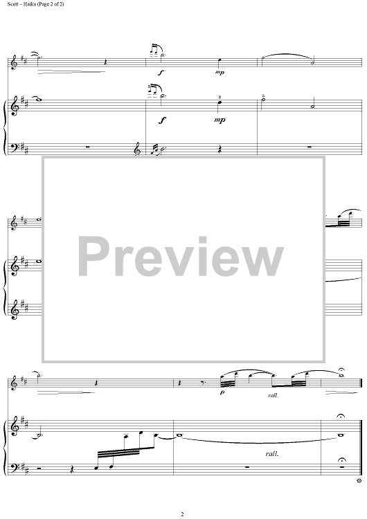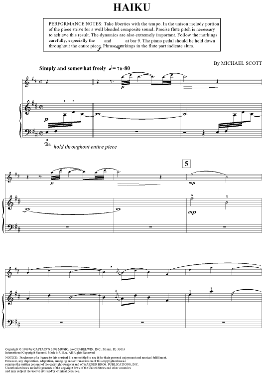 Digital Sheet Music for Haiku - Piano by Michael Scott scored for Flute/Piano; id:235929