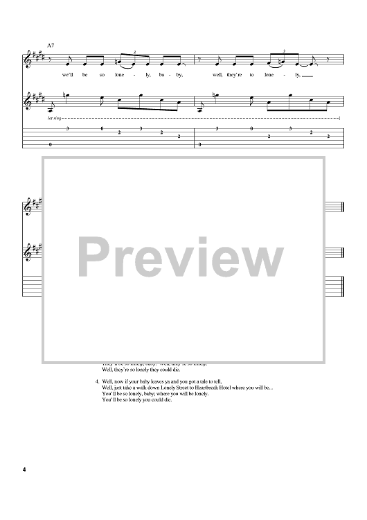 Digital Sheet Music for Heartbreak Hotel by Elvis Presley, Mae Boren Axton, Tommy Durden scored for Guitar Tab; id:380553