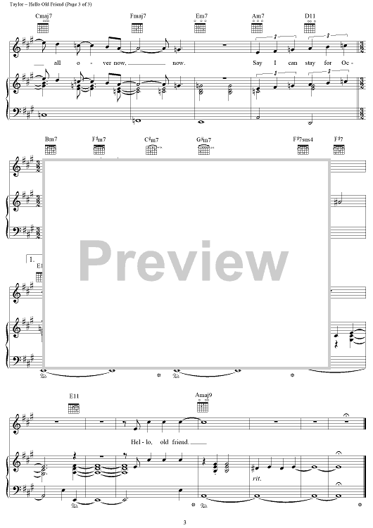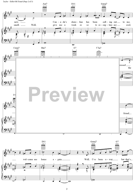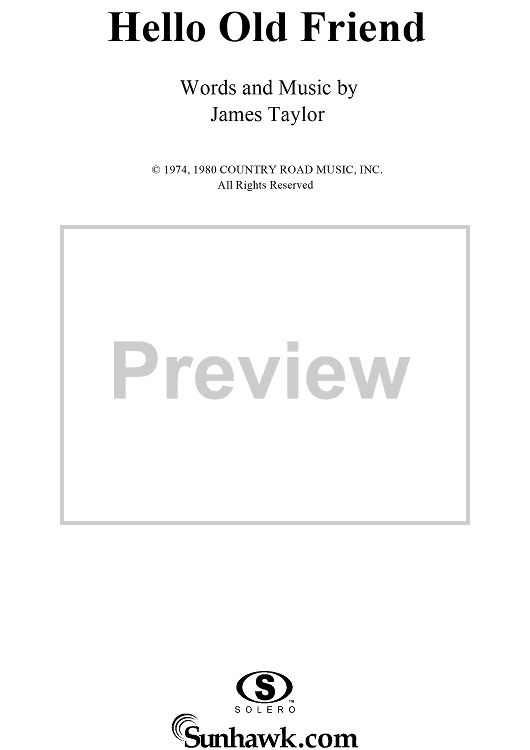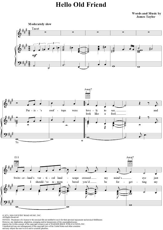 Digital Sheet Music for Hello Old Friend by James Taylor scored for Piano/Vocal/Chords; id:112374