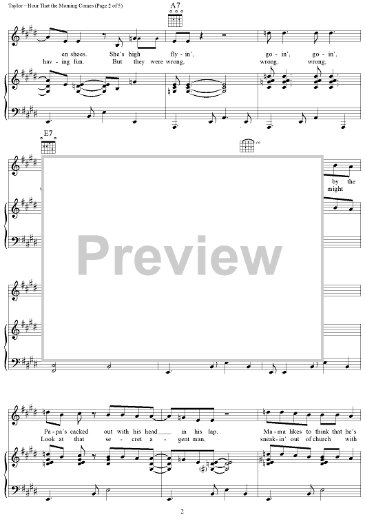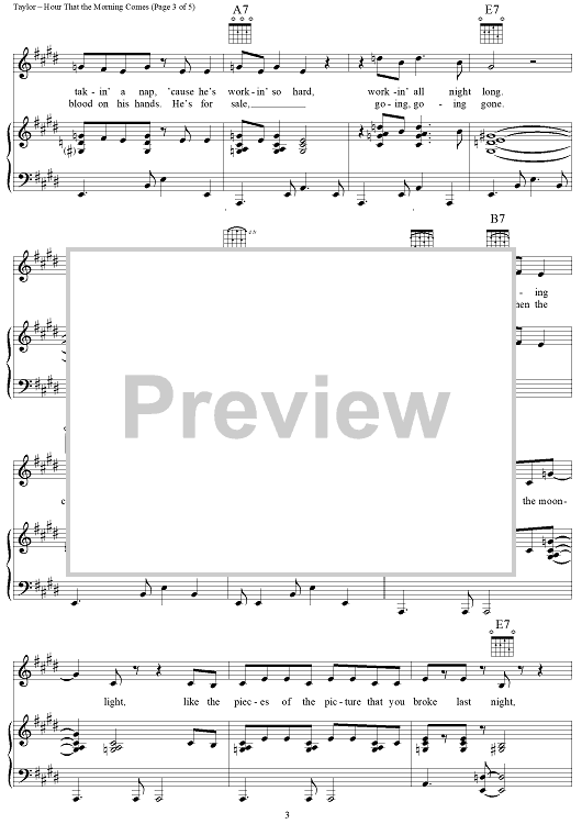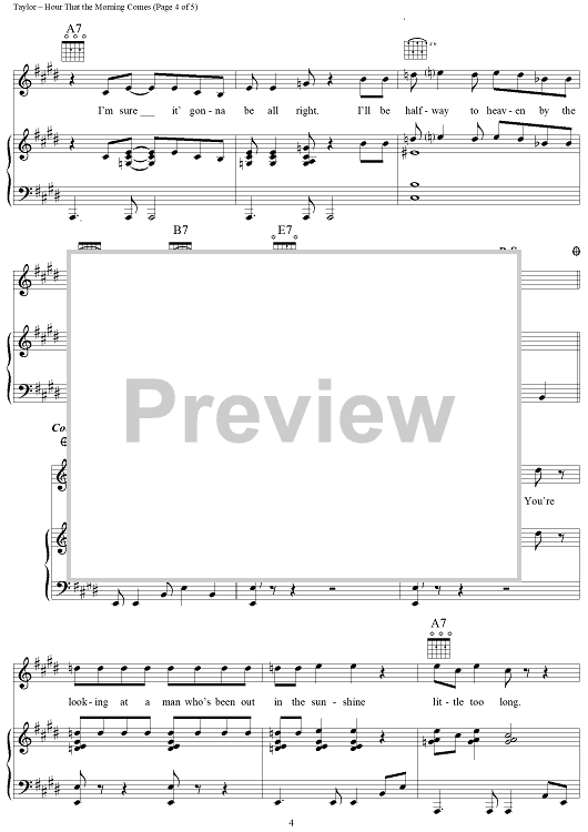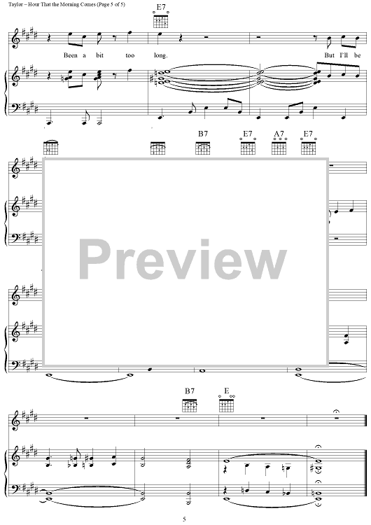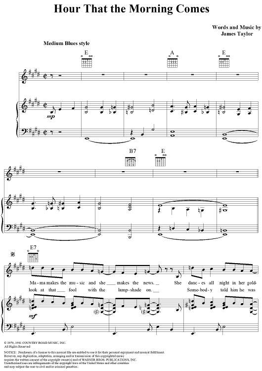 Digital Sheet Music for Hour That The Morning Comes by James Taylor scored for Piano/Vocal/Chords; id:112376