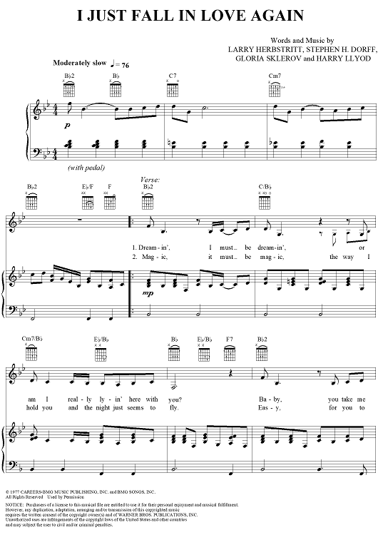 "I Just Fall in Love Again" Sheet Music by The Carpenters