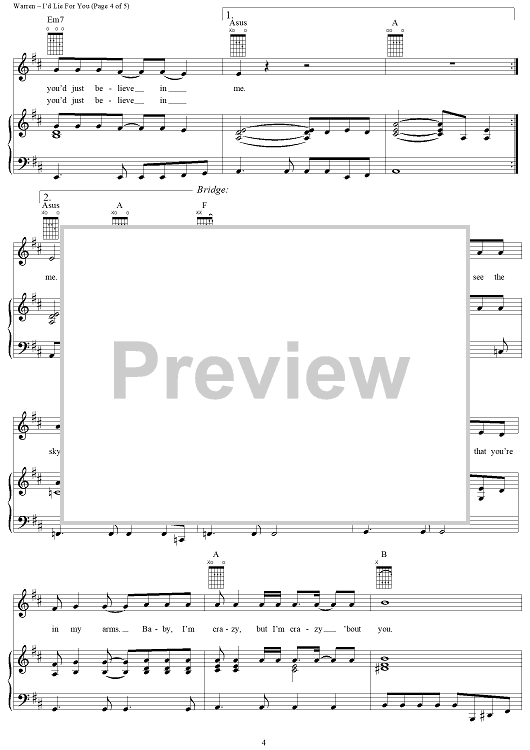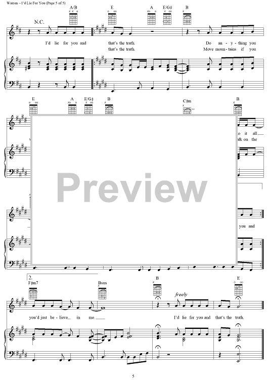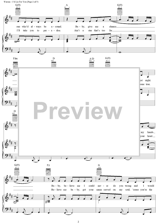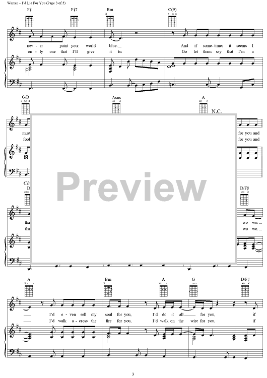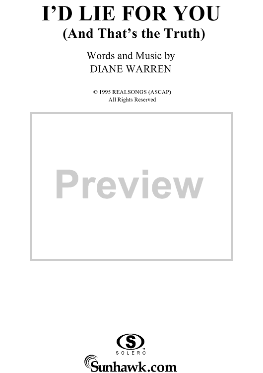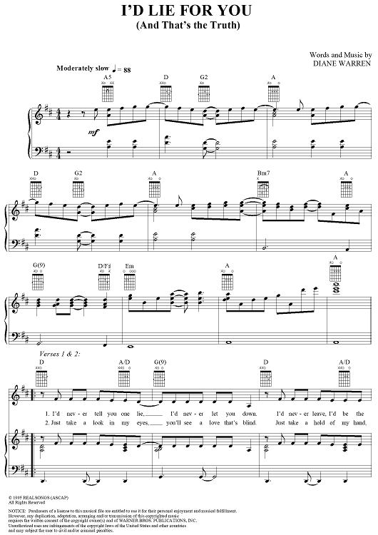 Digital Sheet Music for I'd Lie For You (And That's The Truth) by Diane Warren, Meatloaf scored for Piano/Vocal/Chords; id:119543