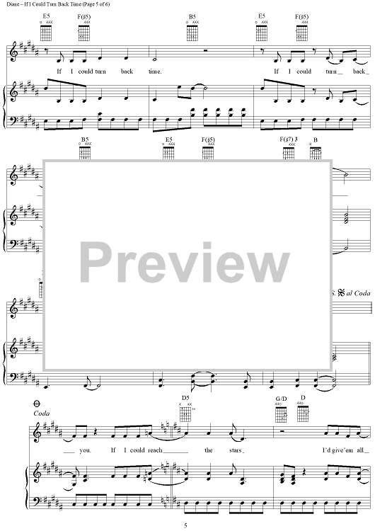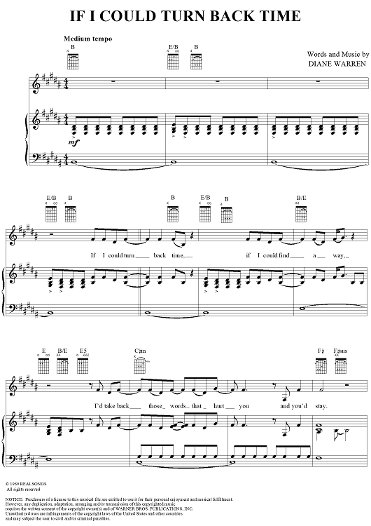 Digital Sheet Music for If I Could Turn Back Time by Diane Warren, Cher scored for Piano/Vocal/Chords; id:95929